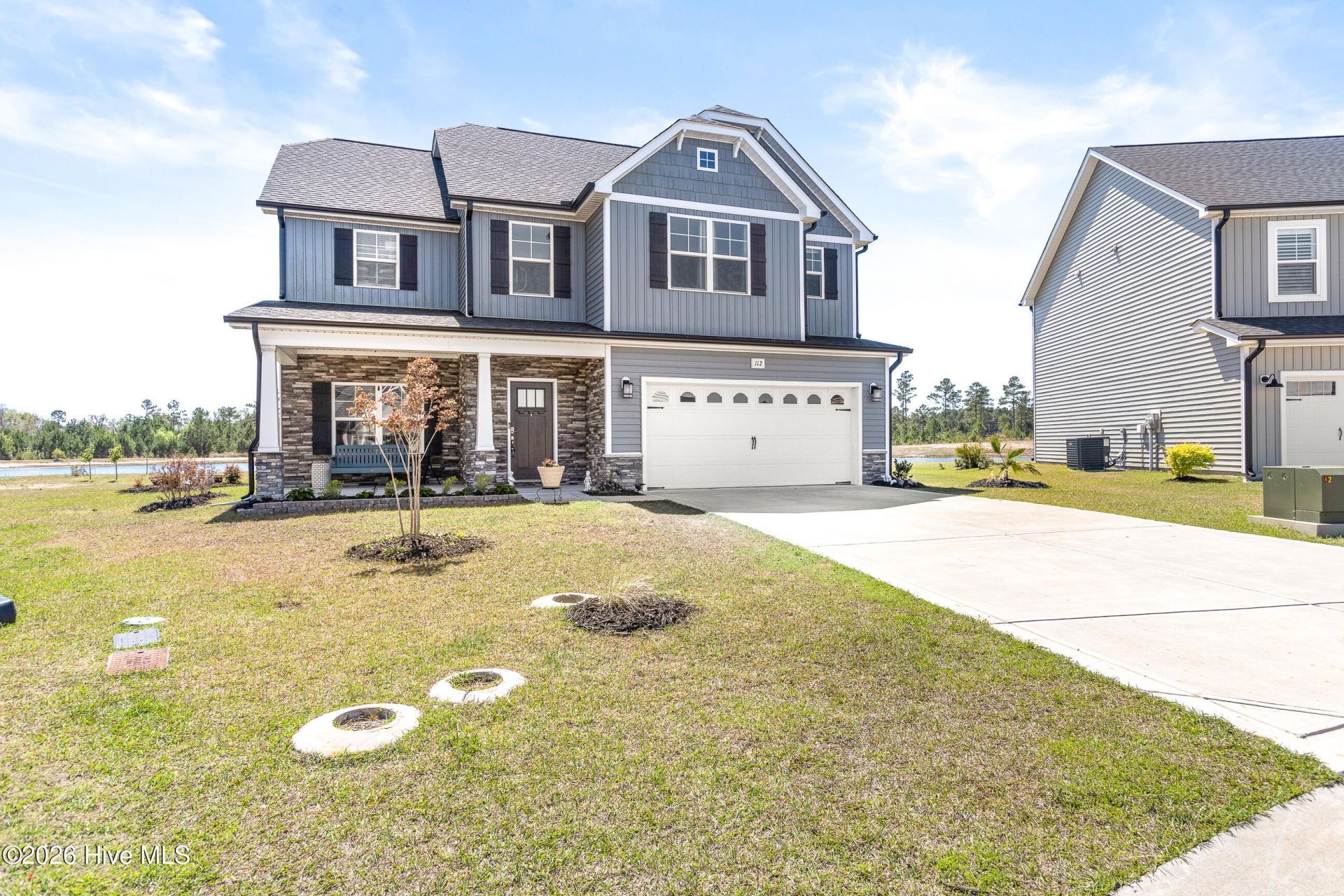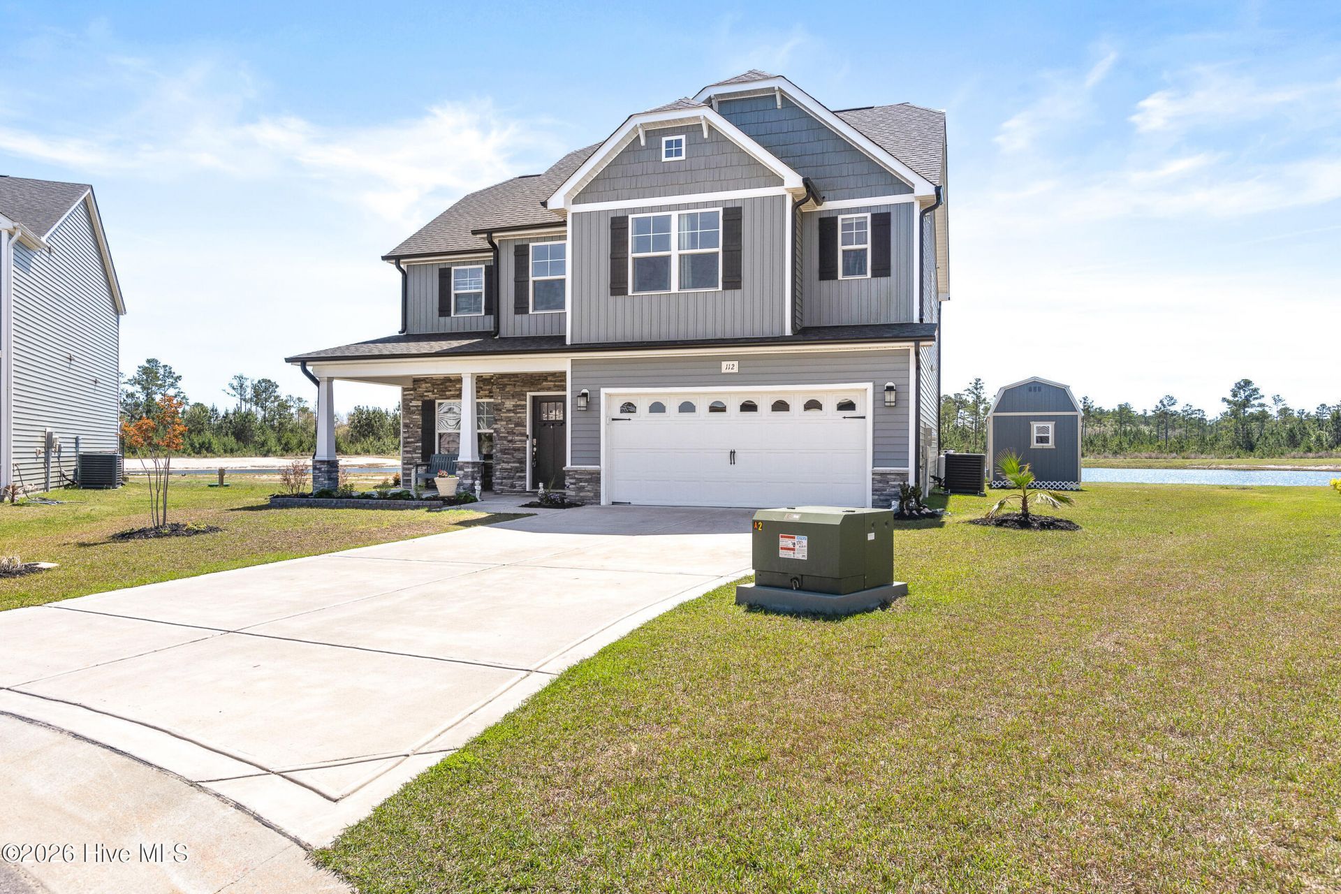 Welcome Home to 112 Sea Breeze Court!Nestled in the desirable Oyster Landing community, this beautiful home combines thoughtful design with everyday comfort in a prime coastal location.When you arrive you will be greeted by a welcoming covered front porch with stone accents that will lead you into a stunning two-story foyer. Just off the entry, the formal dining room impresses with coffered ceilings, elegant wainscoting, and modern glass barn doors.The heart of the home is the open-concept kitchen, featuring quartz countertops, a gas cooktop with a vented chimney hood, double ovens, a large island, a porcelain farmhouse sink, sleek glass backsplash, and stainless steel appliances--perfect for gatherings, entertaining and daily living. The kitchen opens seamlessly to the living room, highlighted by a cozy gas fireplace with a stone surround and floating mantle.Upstairs, you'll find all four bedrooms, including a spacious primary suite with a private en suite offering dual vanities, a Tiled walk-in shower with Frameless glass door, a relaxing soaking tub and 2 walk in closets.Down the hall you will find 3 generously sized bedrooms, a full bathroom, and a laundry room for added convenience. Enjoy peaceful outdoor living in your very own outdoor oasis. Enjoy quiet morning pond views on the covered patio or relaxing nights in the hot tub on the extended patio. And for the garden enthusiasts, the yard features apple and pear trees, blackberry and blueberry bushes, and multiple beautifully maintained flower beds.Additional features include a 2-car garage and a prewired shed, great for extra storage. With a Community pool and clubhouse, and the Convenient location to local beaches, Camp Lejeune, MCAS, and Stone Bay, this home is sure to please!Schedule your Private Showing today!