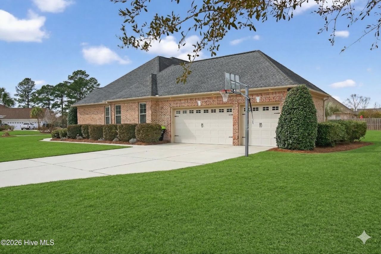 One-of-a-kind estate, on one of the largest homesites in all of Waterford of the Carolinas with a 3 car garage and lake access just down the road. Situated on a cul-de-sac corner lot on over an acre in the elite custom-home section, this residence offers a rare combination of privacy, custom details, and single-level living. The expansive floor plan features four bedrooms plus a large bonus room all conveniently located on the first floor, accented by grand 10-foot ceilings and 8-foot doors. Culinary enthusiasts will thrive in the gourmet kitchen, which boasts a five-burner natural gas cooktop, built-in convection microwave, abundant counter space, and a walk-in pantry. Designed for seamless entertaining, the interior flows effortlessly to a large covered porch that can easily be converted into a sunroom, overlooking a backyard with endless possibilities for a resort-style pool. The patio is already plumbed with gas and electric, ready for your dream outdoor kitchen, while a massive walk-in attic offers the perfect opportunity to be finished for future additional living space and instant equity.Beyond the property line, the lifestyle is unmatched. Just down the road, enjoy a scenic lake with a perimeter sidewalk and miles of additional paths for outdoor exercise. Waterford's world-class amenities include a resort-style pool, clubhouse, fitness facility, tennis and pickleball courts, and miles of picturesque canals perfect for kayaking. While you'll feel worlds away in your private sanctuary, you are only minutes from local boutiques and dining, and within a 30-minute drive to the pristine sands of Wrightsville Beach. This home truly has it all--space, prestige, and a location that can't be beat.