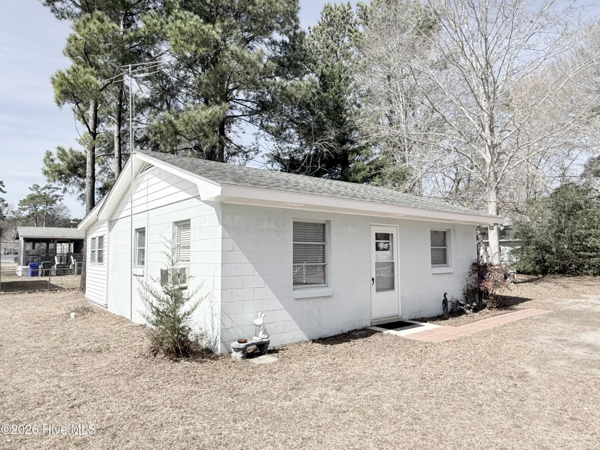 Welcome to 124 Bayshore Drive in Cape Carteret--a charming coastal cottage full of character and potential. Built in 1965, this cozy cinderblock home offers 2 bedrooms and 1 bath, making it an ideal weekend getaway, investment opportunity, or full-time residence. Inside, you'll find a functional layout with updated quartz countertops in the kitchen and a painted concrete floor that adds to the home's low-maintenance appeal. The home is equipped with a wall-mounted propane heater and does not have a traditional HVAC system. Situated in a convenient location, you're just minutes from grocery stores, shopping, area beaches, and enjoy easy access to both Camp Lejeune and Cherry Point. Outside, a powered storage building provides additional space for tools, hobbies, or beach gear. Whether you're looking for a simple coastal retreat or a property with potential to make your own, this home offers a great opportunity in a desirable location.