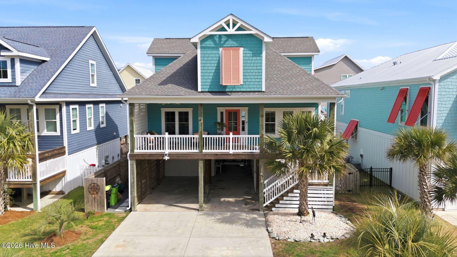 Welcome to 1413 Croaker Lane, a beautifully maintained newer construction coastal home offering the perfect blend of style, comfort, and functionality in one of Carolina Beach's most unique locations, directly across from the Island Greenway and just moments from the beach. Built less than six years ago, this home offers 1,943 sq. ft. of heated living space, plus an additional 191 sq. ft. ground-level flex space, providing versatility for a home office, guest area, or entertainment space. Designed for both everyday living and effortless entertaining, the open layout creates a bright and inviting atmosphere throughout.The kitchen is thoughtfully appointed with quartz countertops, a spacious island, subway tile backsplash, under cabinet lighting, and high end smart appliances, including a propane gas 5-burner range with hood, built-in smart oven and convection microwave, Bosch dishwasher, and a four door French door refrigerator. Custom details such as soft-close cabinetry, deep drawers, and designer window treatments, including 4'' wooden slat custom shutters and room darkening shades add both style and function.The open living area is anchored by a California Closet custom built entertainment center with remote controlled lighting, creating a warm and welcoming gathering space. The primary suite features a tiled walk in shower, while additional bedrooms include custom draperies and ample storage. Pocket doors, shiplap accents in select bathrooms, and generous attic and under-stair storage further enhance the home's thoughtful design. Built for efficiency and peace of mind, the property includes a whole-home GENERAC generator, dual-zone HVAC, a Kinetico whole-home water filtration system, and an owner-owned 500-gallon buried propane tank, all to convey, making move in seamless. With NO HOA and flood insurance not required, you'll enjoy both flexibility and long term savings. Outdoor living is equally appealing, featuring a screened porch off the kitchen, a fully fenced backyard with decorative double gate, mature palm landscaping, and an outdoor kitchen and bar complete with a pass-through window--perfect for entertaining. The ground level also includes a convenient half bath, enclosed outdoor shower, and 2 storage rooms, ideal for easy beach days.What truly sets this property apart is its premier location across from the Island Greenway, offering a rare combination of privacy, open green space views, and immediate access to one of Carolina Beach's most loved outdoor amenities.This is a rare opportunity to own a newer, move-in ready coastal home that delivers on space, location, and lifestyle. Schedule your private showing today and experience all that 1413 Croaker Lane has to offer.