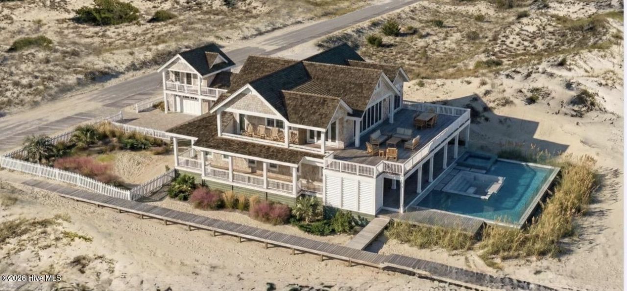 Oceanfront perfection on Bald Head Island's East Beach.Sitting directly on the sand on an extraordinary .82-acre parcel, this newly constructed luxury retreat spans more than 4,500 square feet and captures sweeping, unobstructed views of the Atlantic Ocean, the Cape, and miles of Bald Head Island's pristine shoreline.What makes this homesite incredibly attractive is its singular positioning - with a neighboring residence on only one side, the home enjoys protected southern exposure and an open coastal panorama.Thoughtfully designed with a reverse floor plan, the main living spaces are elevated to maximize breathtaking sunrise-to-moonrise water views from nearly every vantage point. Expansive Marvin windows and doors frame the views with exceptional clarity, while dramatic accordion doors dissolve the line between indoors and out. A thoughtfully integrated Phantom Screen system offers the flexibility to enjoy open-air breezes or screened comfort and protection, extending the livability of the outdoor spaces through every season.Just steps from the beach, the outdoor experience is a private oasis: a stunning saltwater pool and spa, fully appointed outdoor kitchen, dedicated pool bath and shower, and multiple spaces for lounging and entertaining against the backdrop of the Atlantic.A detached crofter offers flexibility as a private sixth bedroom suite, executive home office or studio, ideal for guests seeking privacy or owners desiring a separate retreat.Inside, every finish has been curated by an award-winning interior design studio, blending elevated coastal sophistication with timeless livability. The exterior showcases NuCedar shake siding and Brava tile roofing, enduring materials selected to withstand the coastal elements while minimizing maintenance--allowing owners to simply enjoy life on the ocean.This East Beach estate is where protected views, timeless design, and over 4,500 square feet of oceanfront luxury converge. Buyer will have the opportunity to collaborate on finishes if desired.