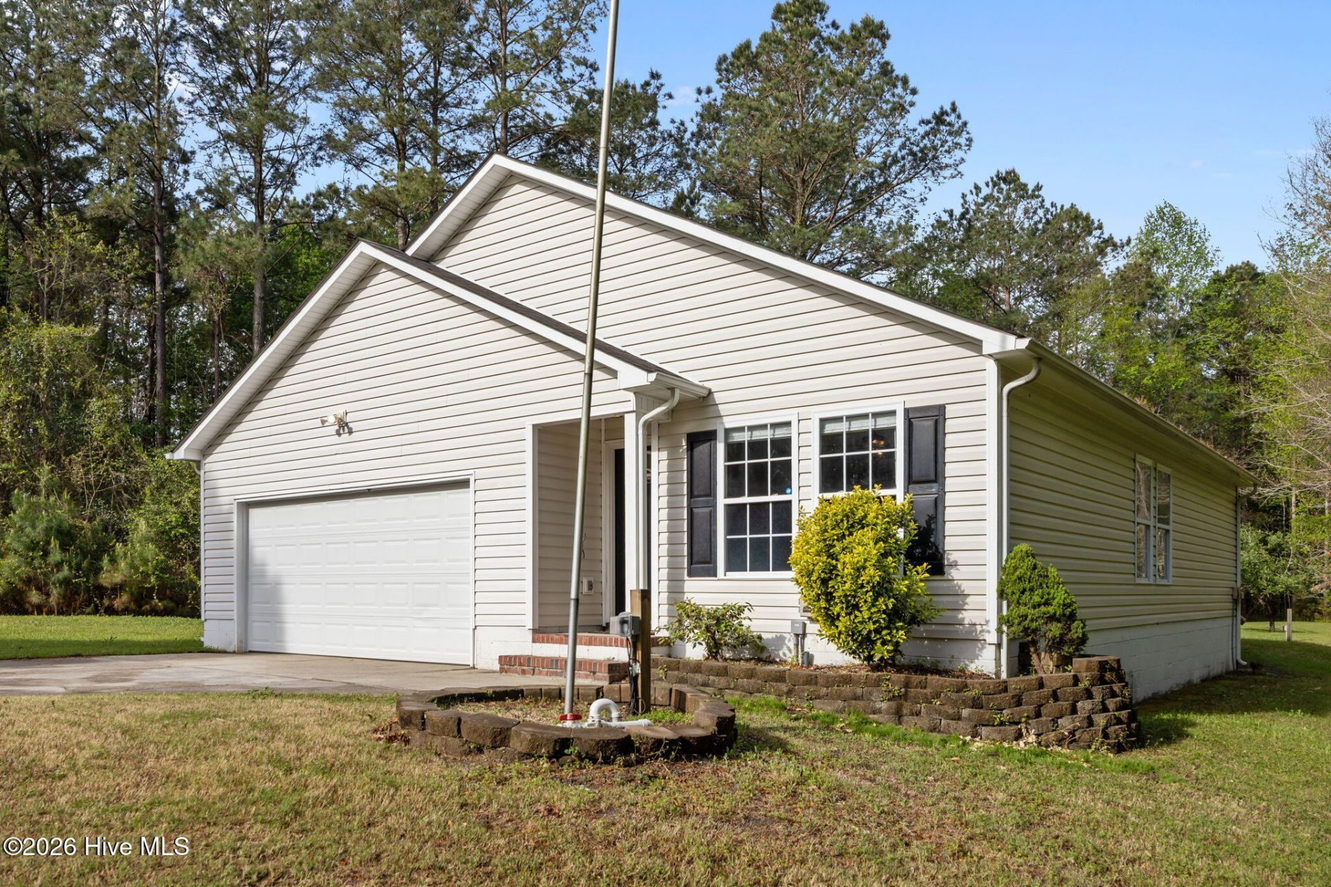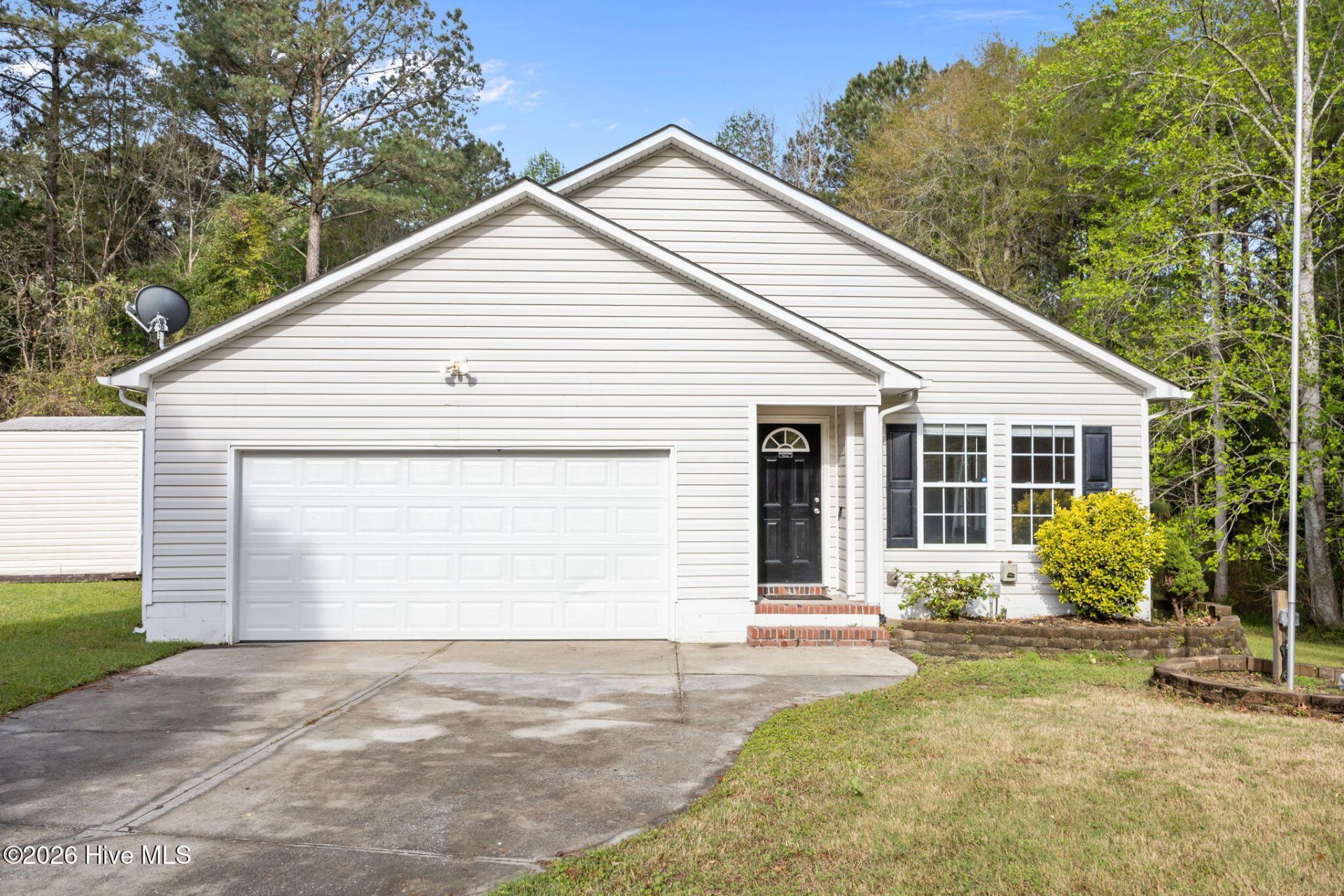 Welcome to your dream home! No HOA No City Taxes! Nestled in a tranquil cul-de-sac, this meticulously maintained 3-bedroom, 2-bath residence offers the perfect blend of comfort, style, and functionality. With a spacious layout and an expansive 1.88 acre lot, this property is ideal for families, professionals, or anyone seeking a peaceful retreat. Step inside to discover a bright and inviting living room that flows seamlessly into the dining area, perfect for entertaining family and friends. Large windows allow natural light to pour in, creating a warm and welcoming atmosphere. The heart of the home features a well-appointed kitchen outfitted with newer stainless steel appliances, ample counter space, and an abundance of storage. Whether you're an aspiring chef or just enjoy cozy family dinners, you'll appreciate this culinary haven that inspires creativity. Just off the kitchen, you'll find a versatile flex area that can be tailored to your needs. Whether you envision a home office, playroom, or cozy reading nook, this space is designed for adaptability and convenience.Retreat to one of the three generously sized bedrooms, each offering comfort and privacy. The master suite features an en-suite bath, providing a perfect haven to unwind after a long day.The expansive lot boasts a well-maintained backyard oasis, complete with a wood deck that invites outdoor gatherings and relaxation. Enjoy summer barbecues, morning coffee, or simply unwind under the stars. An outdoor shed provides extra storage for your gardening tools and outdoor equipment. Conveniently situated just off the main thoroughfare, this home offers easy access to local amenities, parks, schools, and shopping, all while providing a peaceful retreat from the hustle and bustle of everyday life. Imagine coming home to this serene setting, where you can enjoy both the comforts of modern living and the tranquility of nature right in your backyard. With ample space for outdoor activities, entertaining, and personal retreat, this home is a rare find in today's market. Don't miss the opportunity to make this your new home. Schedule a showing today and experience firsthand the warmth and comfort that this property has to offer. Your perfect haven awaits!