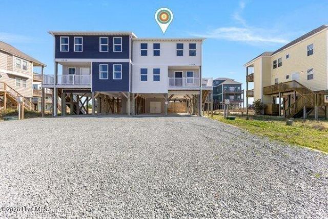 Welcome to 2248 Island Drive, another quality build by Timeless Properties and located just beyond the Surf City line on the pristine coastline of North Topsail Island--this stunning home captures the essence of relaxed coastal living with thoughtful design and strong income potential. With beach access just a short walk away via a designated easement--no need to cross a main road--you can enjoy effortless days on the sand while still appreciating a quieter, more private setting. This fully furnished residence is move-in ready and showcases a well-executed floor plan designed for both comfort and functionality. Inside, clean coastal finishes define the space, including luxury LVP flooring throughout, quartz surfaces in every room, and a combination of recessed and statement lighting that adds warmth and style. The kitchen is both inviting and practical, featuring stainless steel appliances, a large center 10 ft island perfect for gathering, custom cabinetry with soft-close features, a spacious pantry, and under-cabinet lighting that highlights the sleek design. A built-in beverage and coffee station with a mini refrigerator enhances everyday convenience, while sliding glass doors lead to an expansive back deck--ideal for enjoying ocean breezes and glimpses of the water. A rare find, offering five bedrooms and five full bathrooms, the layout is ideal for hosting guests or accommodating multiple families with ease. The primary suite provides a comfortable retreat with a walk-in closet and dual sink vanity, while the additional bathrooms are thoughtfully designed with linen storage and functional layouts. Upstairs, a bonus loft area creates the perfect secondary living space--whether used as a media room, game room, or additional lounge. Each bedroom enjoys a connection to the outdoors with views of either the ocean or the sound. The exterior is equally well-planned, with low-maintenance Trex decking, an outdoor shower for rinsing off after the beach, and a private space to relax or gather. A sizable ground-level storage area offers plenty of room for beach equipment and outdoor gear, while covered parking for four vehicles and additional driveway space ensures convenience for both owners and visitors. Set in a prime location near local favorites like the Surf City line, the iconic Trailer Bar, Revival, and just minutes from the heart of Surf City, this property blends accessibility with a laid-back coastal lifestyle. Whether you're looking for a second home, full-time residence, or a turnkey rental investment, 2248 Island Drive offers a fresh opportunity to enjoy the best of island living.