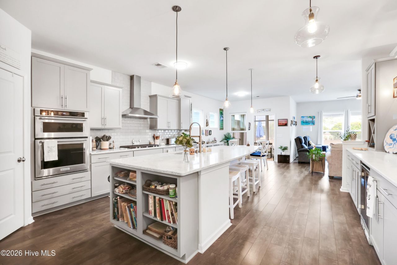 Welcome home to coastal charm and easy living in RiverLights at Del Webb!Will you spend the day enjoying the community's resort-style amenities or hosting friends on your private back patio? The choice is yours.This beautifully maintained 2-bedroom home welcomes you with a spacious foyer and a versatile front flex room -- perfect for a home office, reading nook, hobby space, or additional sitting area. The open-concept kitchen is designed for gathering, featuring a large island, abundant cabinetry, and a stylish built-in dry bar with beverage cooler and shiplap accent wall -- adding just the right touch of coastal character.The kitchen flows seamlessly into the light-filled living and dining areas, creating an inviting space for everyday living and entertaining. Tucked just beyond, the 3-season room offers a cozy extension of your living space -- ideal for morning coffee or relaxing evenings.The private primary suite is thoughtfully positioned off the main living area and features a generous walk-in closet and spa-like bath with zero-entry shower. A second bedroom is privately situated near a full bath, providing comfortable accommodations for guests.Lovingly maintained and move-in ready, with a new HVAC system installed in 2025, and a whole house generator, this home offers low-maintenance living and relaxed coastal style in one of the area's most desirable 55+ communities.