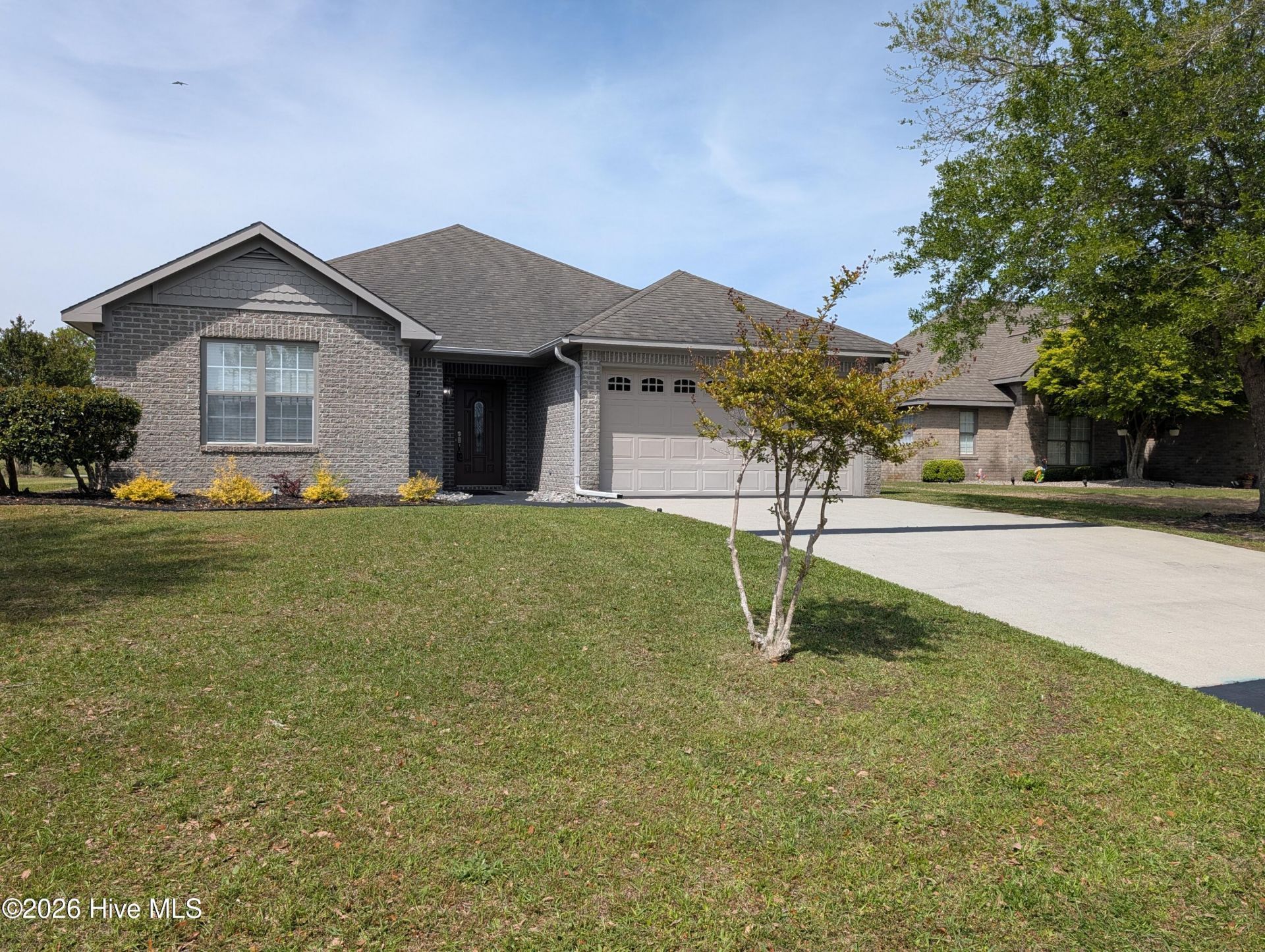 Immaculate all brick, one story home in the desirable Castle Bay golf community of Hampstead, offering classic construction, extensive updates, and an exceptional coastal golf lifestyle. This beautifully maintained 3 bedroom, 2 full bath residence features an easy, flowing floor plan designed for comfort and functionality, with spacious living areas anchored by a fireplace that creates a warm and inviting focal point. The kitchen is both stylish and practical with granite countertops, updated appliances, ample cabinetry, and a layout that opens seamlessly to the dining and living spaces, making everyday living and entertaining effortless. The home has benefited from numerous thoughtful upgrades, including a new HVAC system, updated flooring throughout, fresh interior paint, upgraded electrical outlets, a serviced septic pump, and extensive exterior improvements such as French drains and a full irrigation system. The oversized garage has been enhanced with durable epoxy flooring, perfect for clean storage, projects, or showcasing vehicles. Enjoy peaceful mornings and relaxed evenings on the screened porch, a true extension of the living space that captures coastal breezes and the subtle scent of salt air. Located in the established and scenic Castle Bay community, residents enjoy a golf centered neighborhood built around a Scottish links style championship course with clubhouse, dining, practice facilities, and optional amenities. Ideally positioned just minutes from top rated schools, shopping, dining, and medical care, with quick access to public boat launches, the Intracoastal Waterway, and the beaches, this home delivers low maintenance living, quality craftsmanship, and the very best of coastal North Carolina living in one exceptional property.