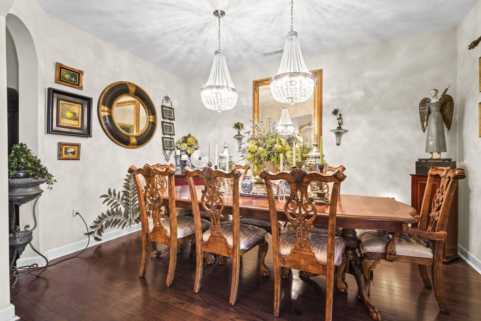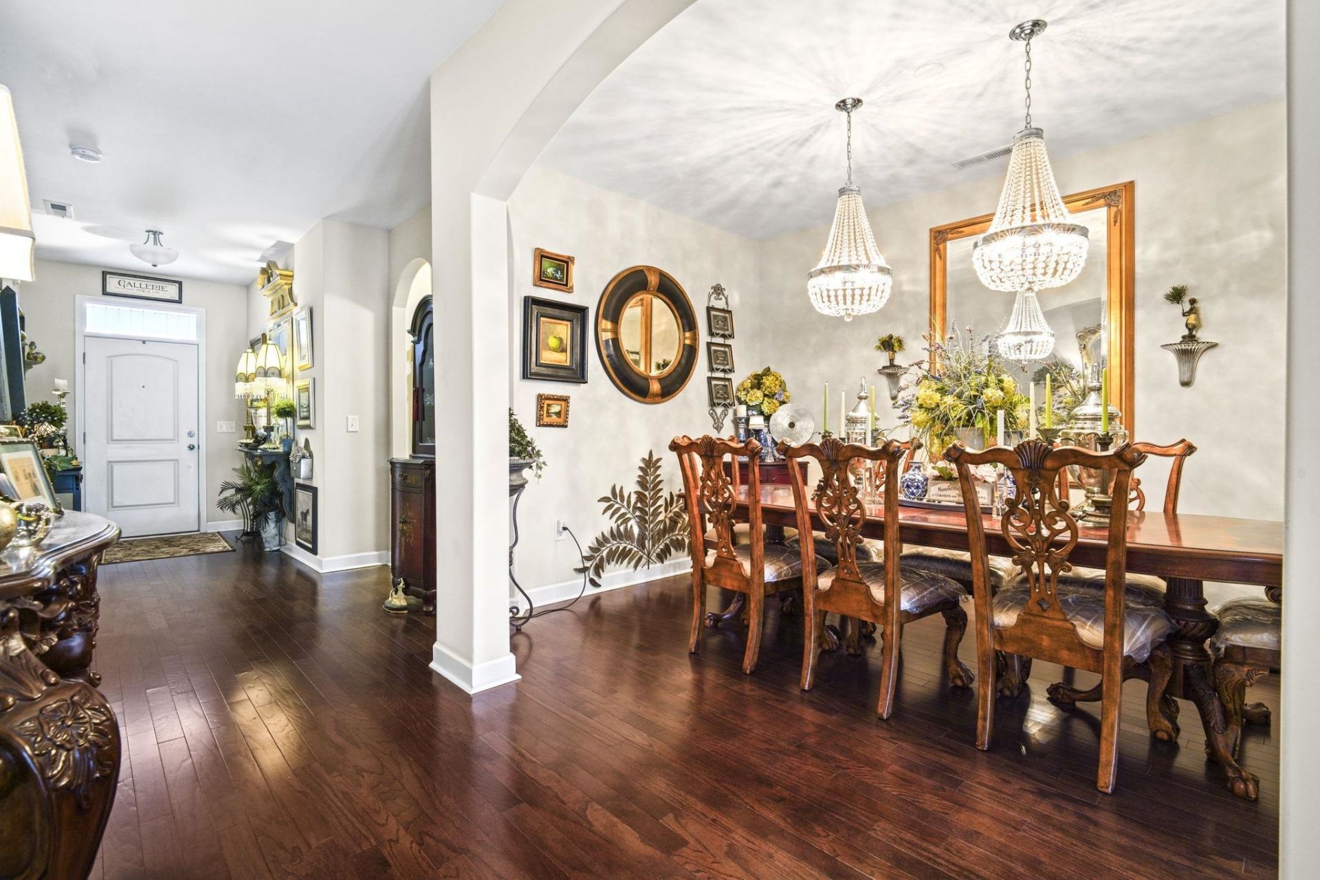 Designed by an interior designer, this stunning 3-bedroom, 2-bath single-story home is located in the exclusive Brookberry section of The Farman intimate enclave of just 55 homes built by RS Parker, known for its close-knit community feel. From the moment you arrive, the attention to detail is evident with lush landscaping, an irrigation system, and a beautifully tiled front entry. Inside, the foyer welcomes you with real hardwood flooring in a factory white oak French finish, setting the tone for the elevated design throughout. The home features a formal dining room with two statement chandeliers, a spacious laundry room, and a two-car garage. The main living area is filled with natural light from four tall windows showcasing serene pond and preserve views, complemented by vaulted ceilings and a striking bronze hanging light fixture. The kitchen is thoughtfully upgraded with the largest granite countertop offered by the builder, stainless steel appliances, updated fixtures and lighting, and an air purification system. The primary suite offers peaceful water views with additional windows creating a panoramic feel, along with a tiled step-in shower featuring safety handrails. Enjoy quiet mornings or relaxing evenings on the screened porch with a knee wall, overlooking a private backyard and natural surroundings. This one-of-a-kind home also offers access to community amenities including two pools, a playground, fitness room, and basketball court. Conveniently located just minutes from Tanger Outlets, dining, medical facilities, and everyday essentialsand only a short drive to the beach.