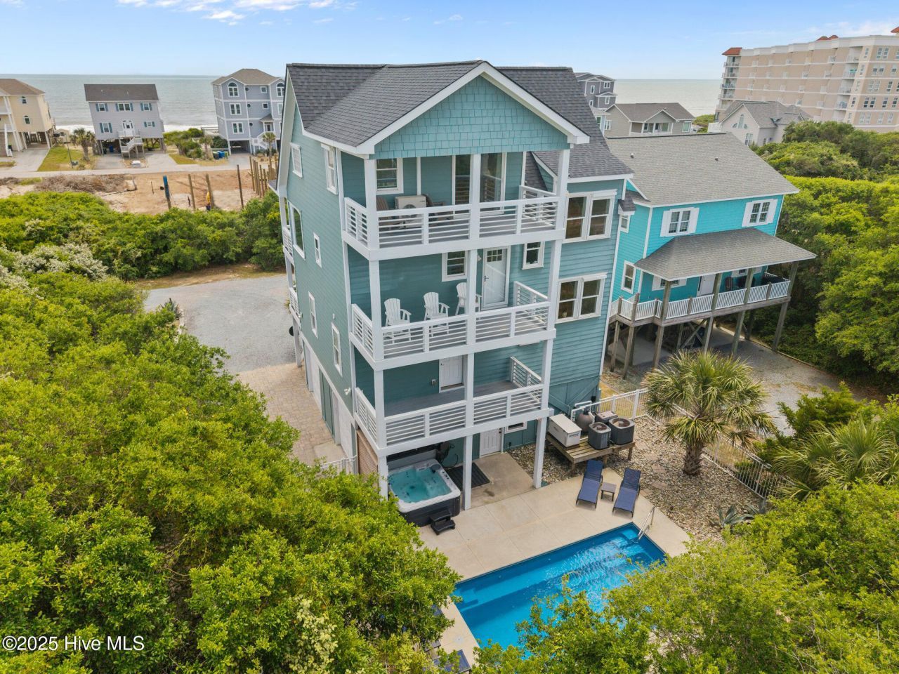 Nestled in the heart of North Topsail Beach in a quiet neighborhood, 6 Bottlenose Boulevard offers the ultimate coastal living experience with ocean views and a myriad of amenities designed for relaxation and fun and a history of generating strong rental income. This charming second-row beach house features an elevator, 4 bedrooms and 2.5 bathrooms, making it the ideal retreat for creating memories with family and friends. Dive into relaxation with your own private pool or unwind in the hot tub after a day of beach adventures. Sold fully furnished with all ameneties,this house is immediately ready for you to come to the beach or to immediately continue generating rental income! The first floor consists of three bedrooms and one bathroom. Two of the bedrooms have queen-sized beds, both with private deck access, and the third bedroom has two, twin over twin bunk beds. Proceed to the second floor to find the living room, dining area, kitchen, laundry room, and a half bathroom. The open floor plan allows for the perfect space to entertain family and friends. The living, dining, and kitchen areas are filled with natural light and showcase unparalleled ocean views from the wall of windows. Access an expansive deck from the living room which has plenty of seating to enjoy the view and salubrious breeze. Proceed upstairs to the third floor to find the master suite. The spacious master bedroom boasts a king-sized bed, an ensuite bathroom with a spacious walk-in shower, his and hers sinks, and two private balconies, one on either side to enjoy both ocean and sound views.